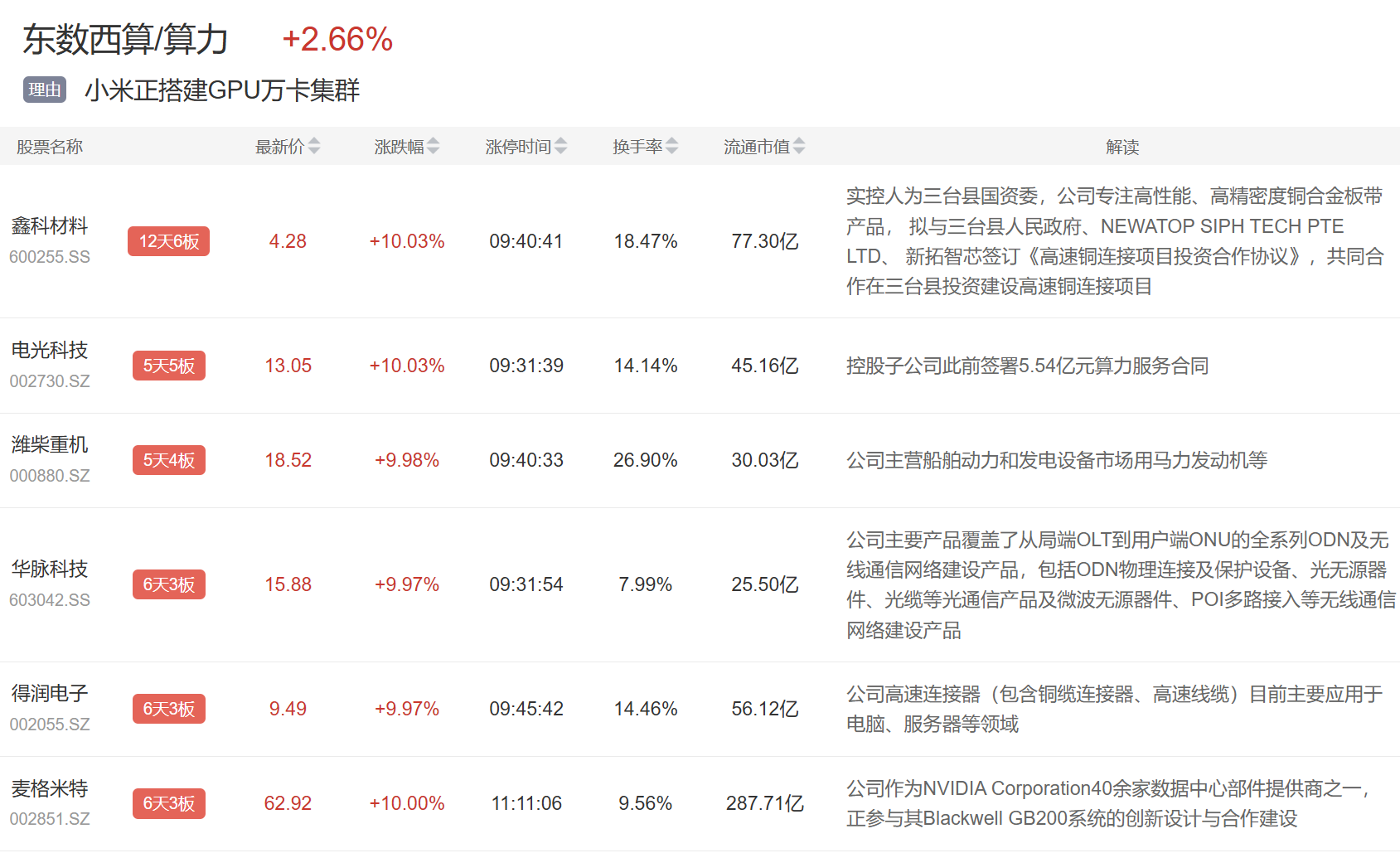 算力概念今日爆发,潍柴重机、科泰电源、麦格米特等多股涨停。