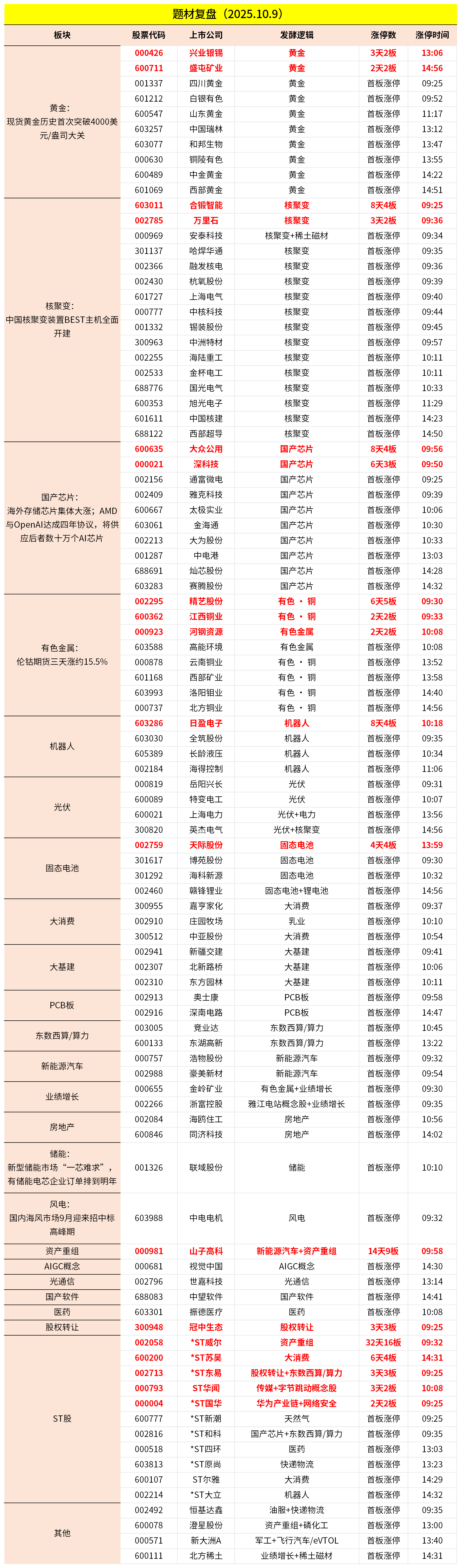 10月9日主题复盘 | 沪指创十年新高,矿产资源、核聚变、国产芯片轮番表现