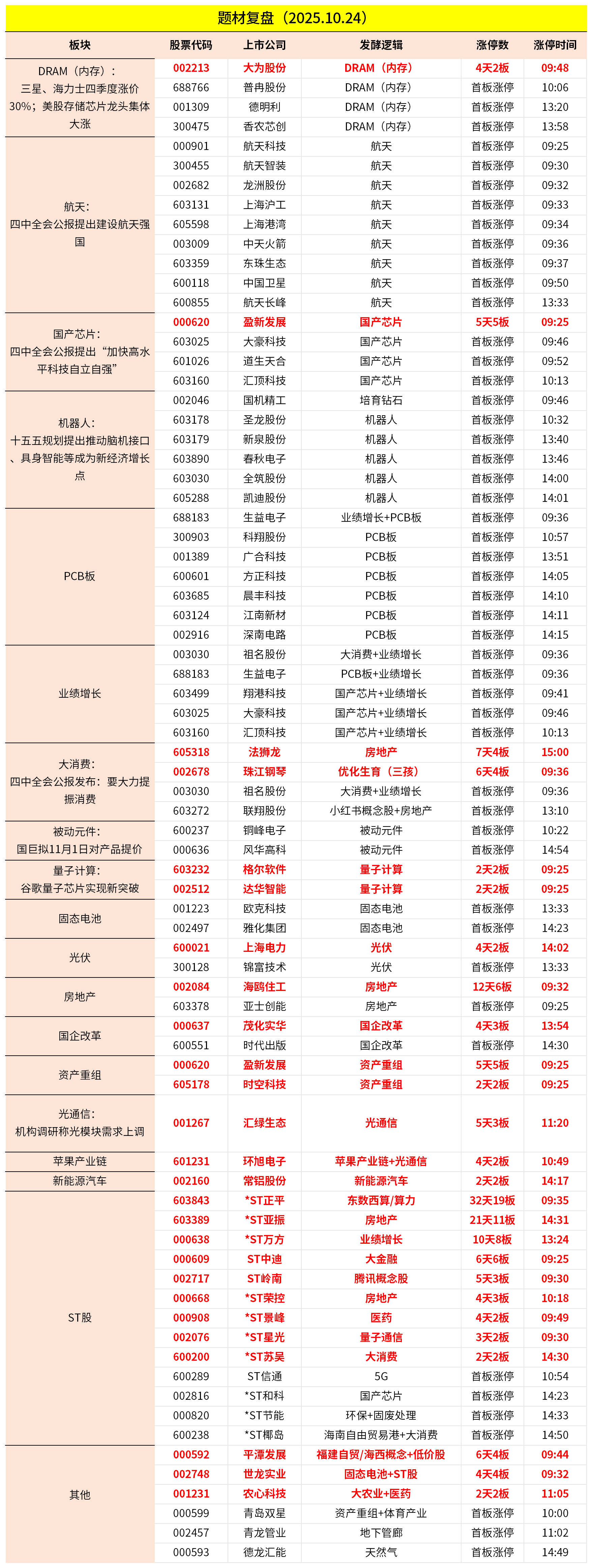 10月24日主题复盘 | 存储板块携手航天爆发,AI、国产芯片产业链全线反弹