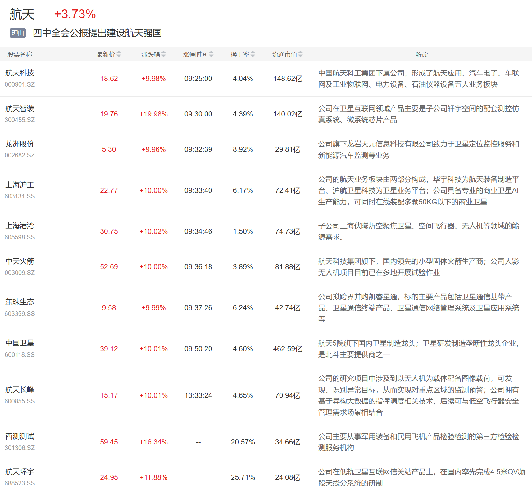 航天板块今日也爆发,航天科技一字板,航天智装、上海沪工、中国卫星等多股涨停。