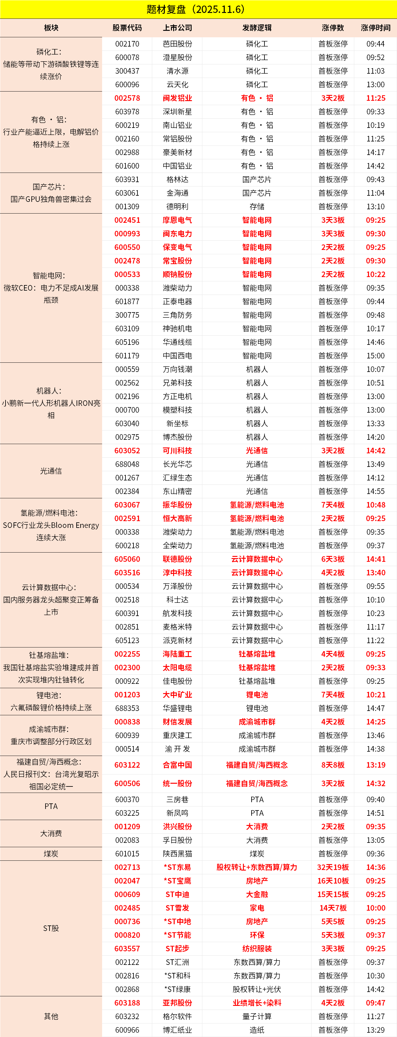 11月6日主题复盘 | 沪指重返4000点,磷化工、有色铝大涨,国产芯片反弹