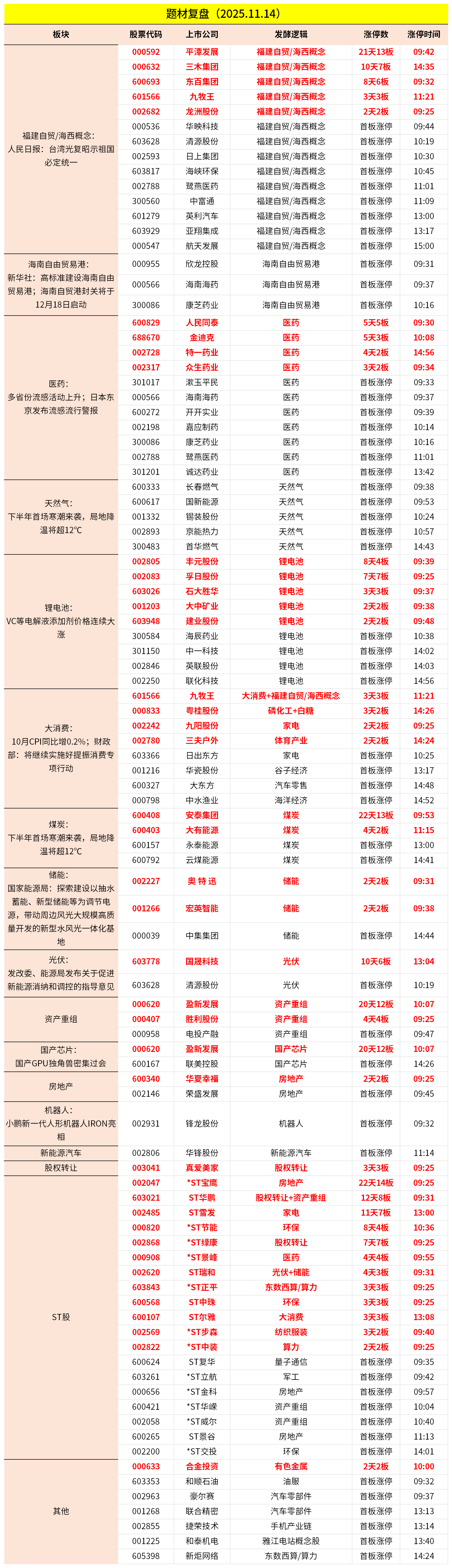 11月14日主题复盘 | 福建板块再度爆发,医药、天然气逆市走强