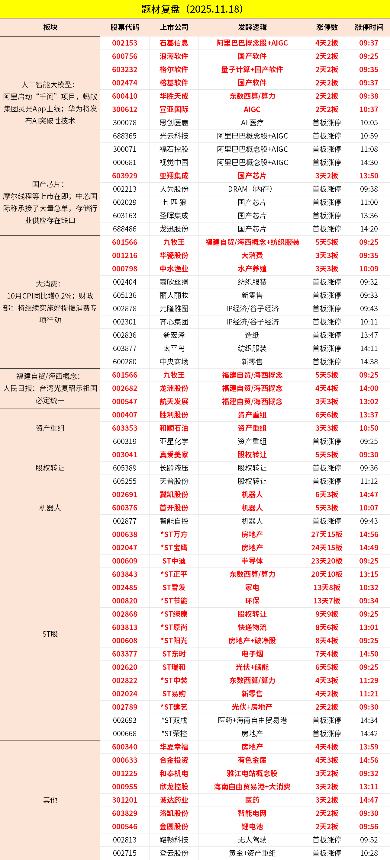 11月18日主题复盘 | AI应用全线大涨,半导体板块也逆势反弹,锂电池板块大幅调整