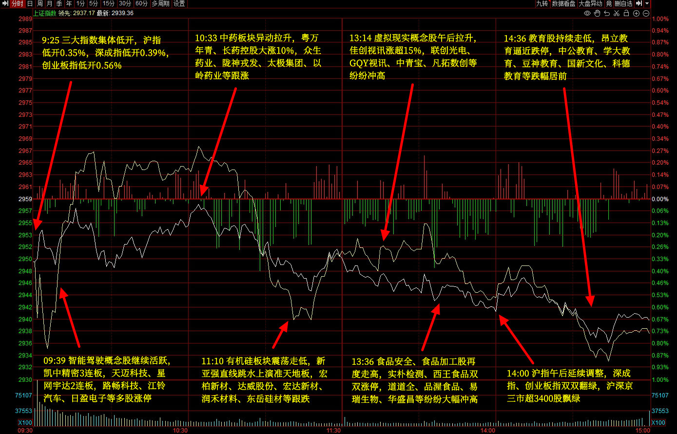除上述热点外,午后VR概念也有异动,佳创视讯直线封板,新能源汽车、光伏局部活跃;跌幅方面,业绩暴雷个股普遍大跌。