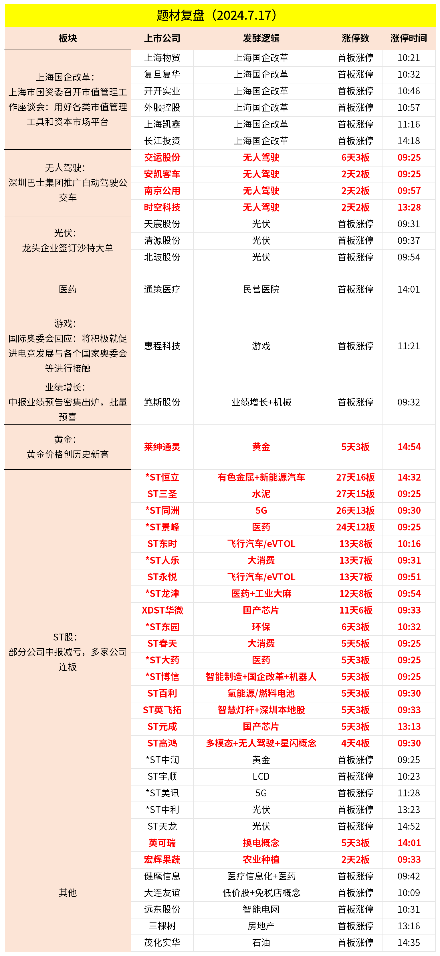 2024-07-17主题复盘 | 北交所上海国资改革爆发,沙特光伏概念医药医药异动