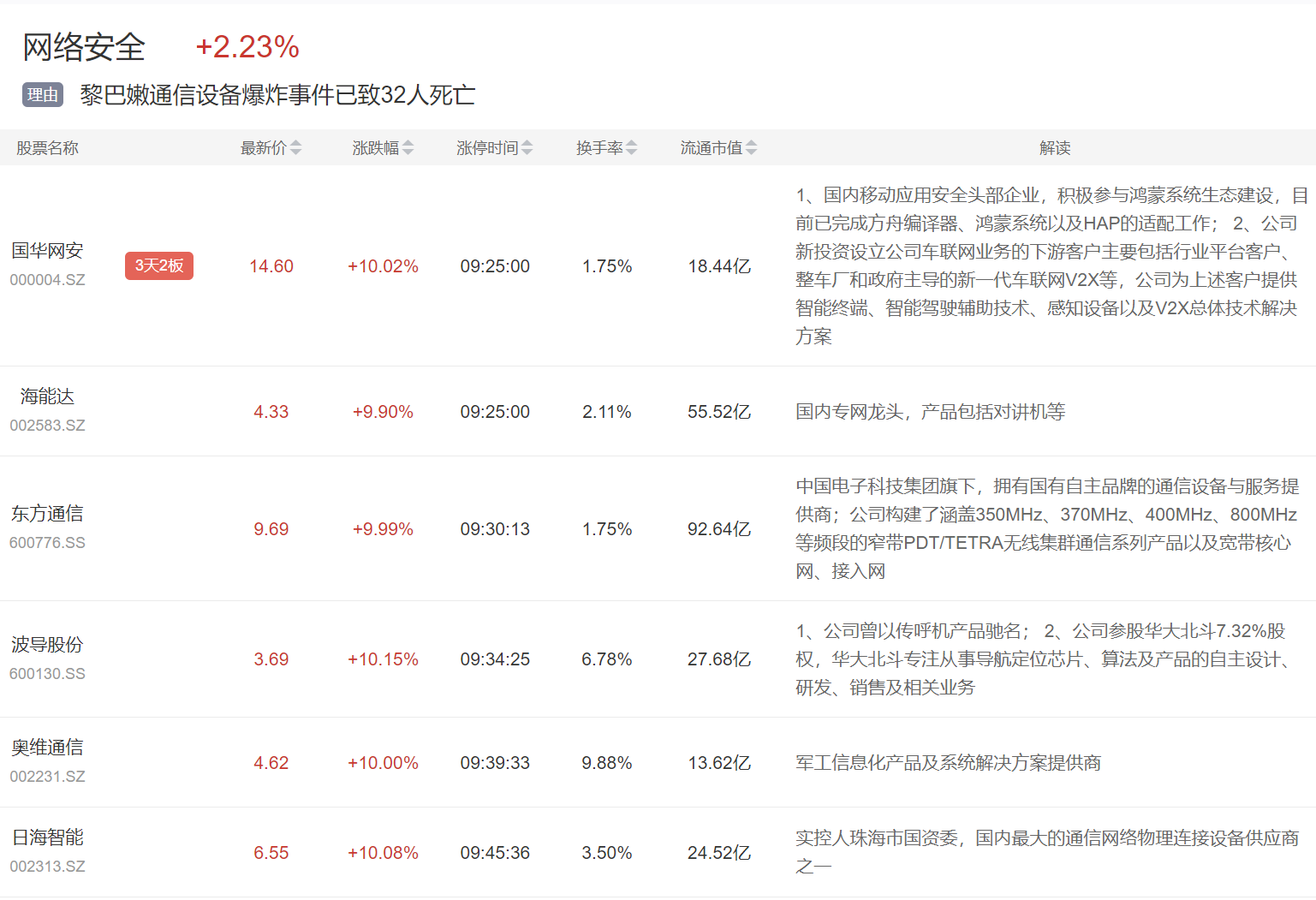 网络安全板块今日爆发,国华网安、海能达、波导股份等多股涨停。