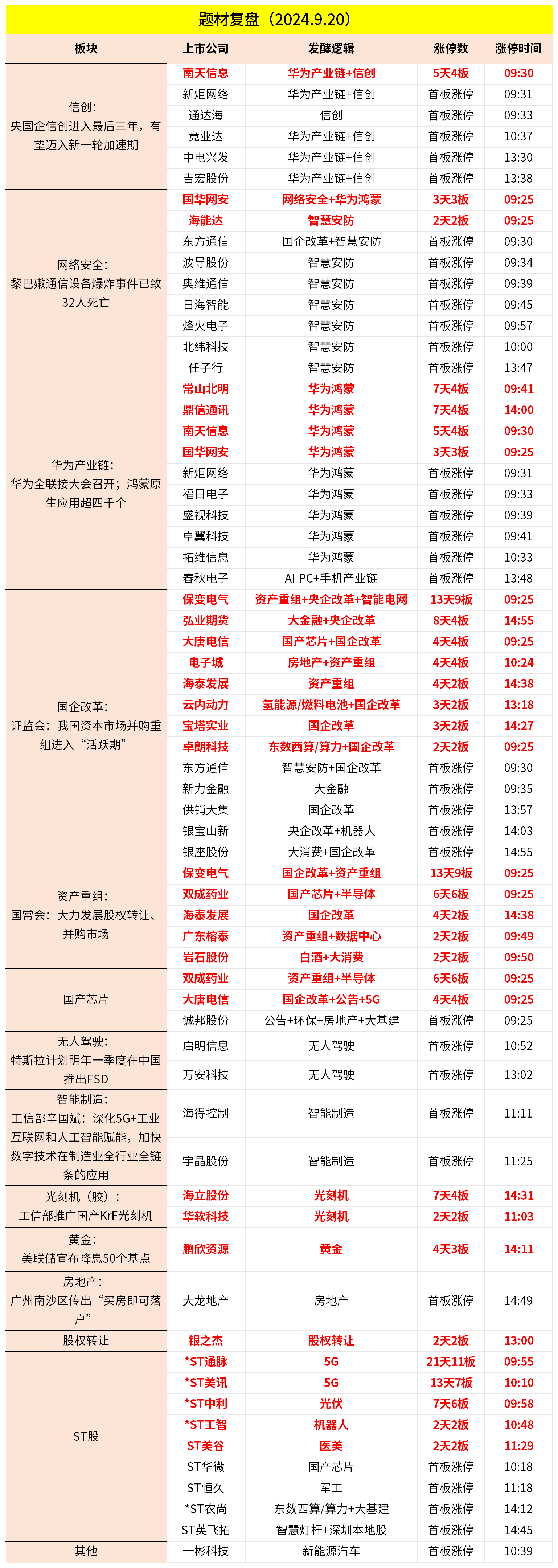 2024-09-20复盘 | 信创继续大涨,华为产业链持续活跃,网络安全爆发