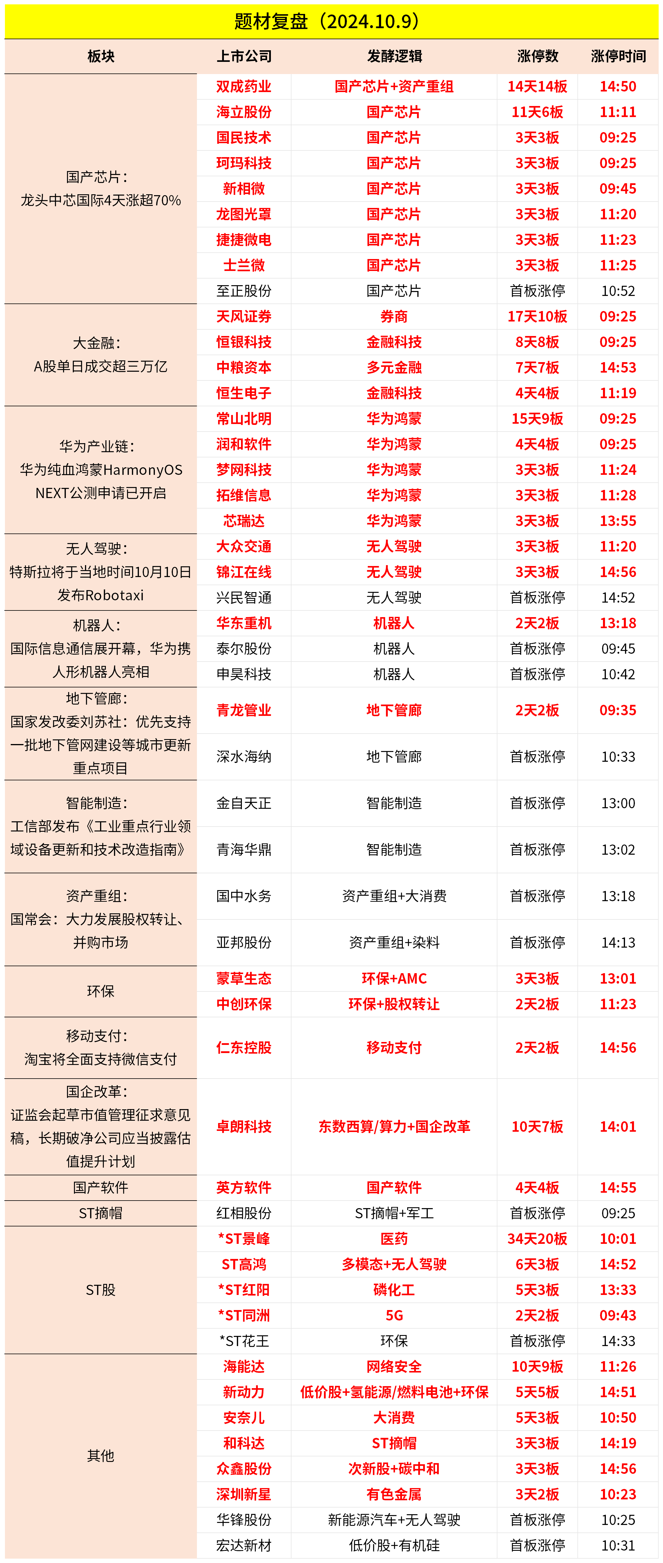 2024-10-09复盘:指数大幅回调,金融股分化,国产芯片、华为鸿蒙持续活跃