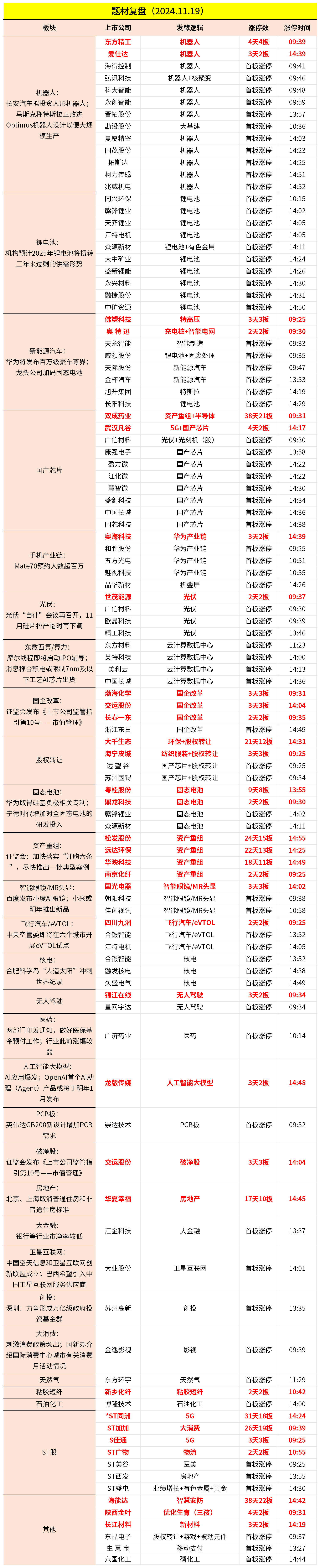 2024-11-19复盘:指数探底回升,机器人活跃,锂电池、半导体午后集体走强